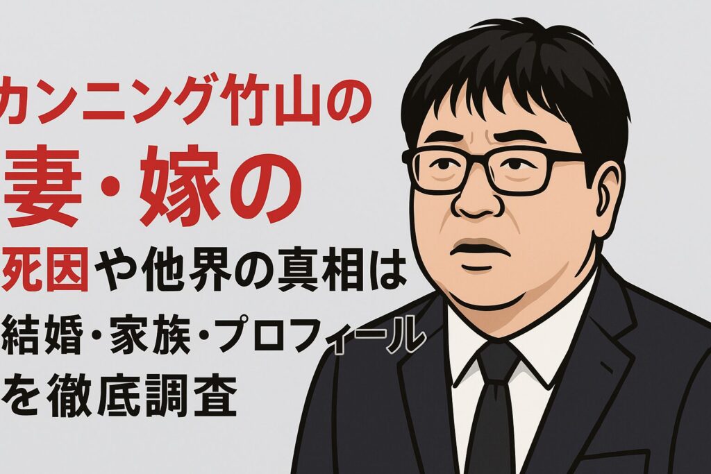 カンニング竹山さんの妻・嫁の死因や他界について、ネット上で大きな注目を集めています。「カンニング竹山 妻 死因」「カンニング竹山 嫁 他界」といった検索キーワードが急増しており、多くの方が心配されているようです。この記事では、カンニング竹山... -